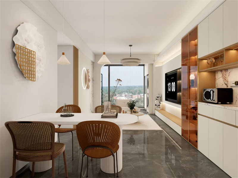 餐邊柜與玄關(guān)柜、電視柜一體設(shè)計(jì)