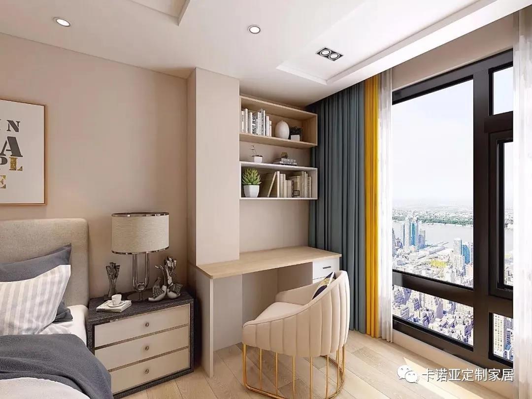 別出心裁地在飄窗邊創(chuàng)造一個(gè)小書房區(qū)