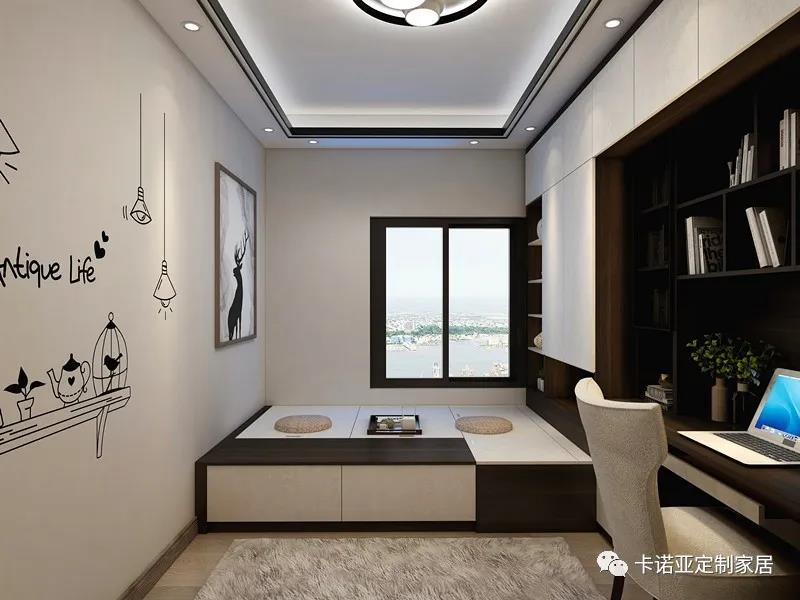 榻榻米、衣柜、書柜、書桌一體化設(shè)計(jì),