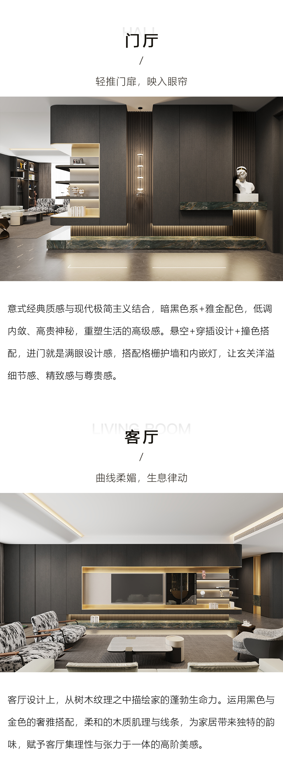 意式極簡(jiǎn)宅邸丨暗黑色系+雅金演繹現(xiàn)代豪宅潮流范