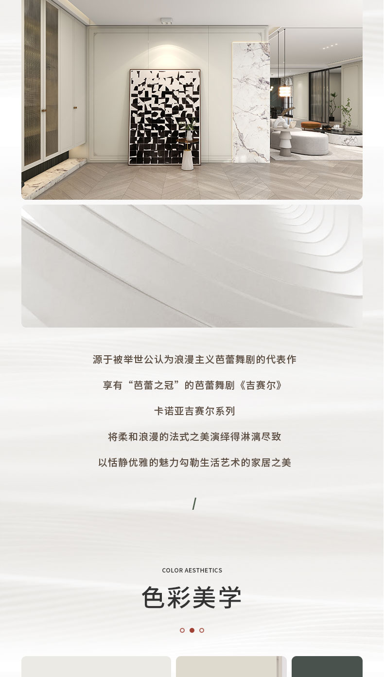 吉賽爾 | 法式風格源于被舉世公認為浪漫主義芭蕾舞劇的代表作,享有“芭蕾之冠”的芭蕾舞劇《吉賽爾》將柔和浪漫的法式之美,演繹得淋漓盡致,以恬靜優(yōu)雅的魅力,勾勒生活藝術的家居之美