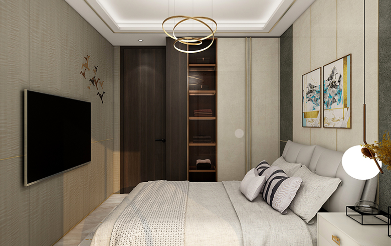 從練達(dá)到通透,一覽無余的格局,是每段小時(shí)光累聚成的高光時(shí)刻。輕奢免漆門,原木本色,實(shí)木觸感,一門到頂讓臥室空間更顯高挑,并與床頭的護(hù)墻板相映襯,輔以奢麗金屬質(zhì)感裝飾條,完美傳承免漆門的高端奢華感。