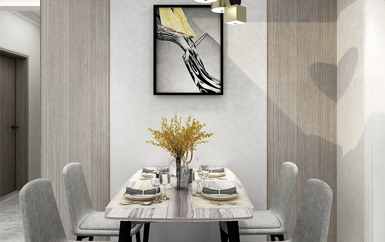 從玄關(guān)到客廳,再至餐廳,廚房,臥房,書房,空間主角都是灰色,白色,溫馨的銀絲木與珍珠白的柜體突顯優(yōu)雅又帶來(lái)溫馨的家氛圍。