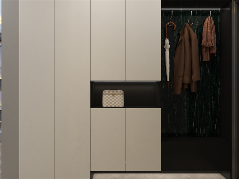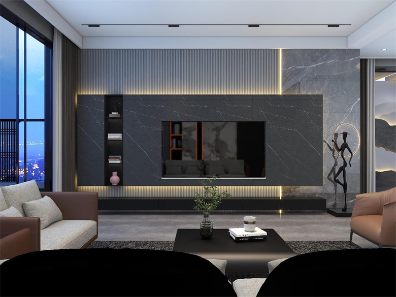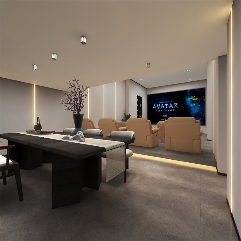 此案,為現(xiàn)代極簡風(fēng)格,整體以簡單大氣,穩(wěn)重不失溫馨,設(shè)計上嚴格遵循人體工程學(xué)原則,在造型、材質(zhì)等方面要符合人的生理和心理需求。此案設(shè)計的色彩比較單一,顏色多選用單色,或少數(shù)幾種顏色搭配。避免使用多種顏色混搭以及避免使用強烈對比的顏色,復(fù)雜華麗的顏色,反對繁瑣的花紋色彩的搭配。在色彩上追求平和、舒緩、內(nèi)斂之感極簡主義的設(shè)計多采用直線、方形,或規(guī)則簡單的幾何形狀,減去一切不必要的元素與細節(jié),比例精確,整體呈現(xiàn)簡潔明快,干凈利落感覺。此案中大部分空間運用了無主燈,因為無主燈設(shè)計講究的是“見光不見燈,分區(qū)域散點照明”。而且的無主燈設(shè)計能夠讓空間更具層次感,顯得非常的高級,若隱若現(xiàn),層次分明。